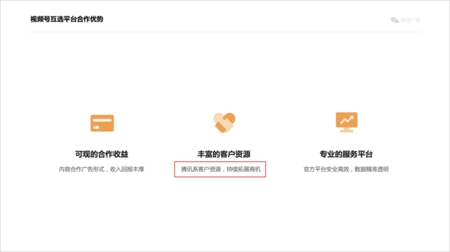 虽然还没有具体说明是哪些客户资源,但是据我们猜测,应该就是投「朋友圈贴片广告」、「公众号流量主」的广告主们。
