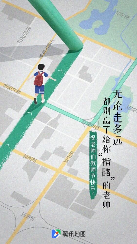 地图为我们指明现实生活中的道路,而老师为我们指明人生的道路。地图上划过的粉笔痕迹,完美呼应教师节这一主题。
