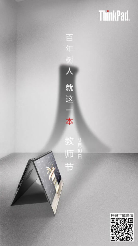 笔记本电脑的倒影,映在墙上成了“人“的字样。十年树木,百年树人,ThinkPad的这则海报通过独特的创意表达了对教师的敬爱之情。