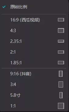 剪映导出的比例有这么多种,咱也不知道从哪冒出来这么多尺寸,咱也整不明白,反正各大短视频平台常见的尺寸,我总结下来就两种,一种是1:1,另一种是16:9。