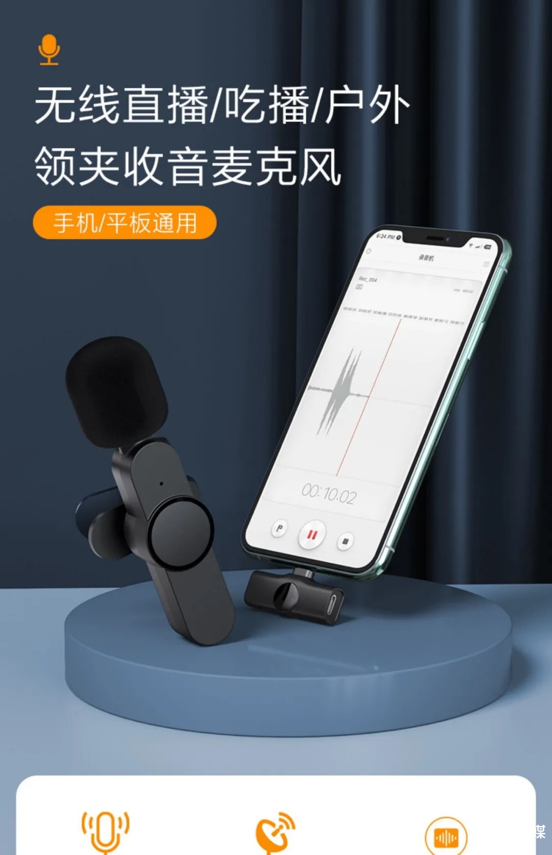 我选择的这款是领夹式麦克风,特别小,就往衣领上面一夹就行了,而且也不用刻意对着麦克风讲,录出来的声音效果,确实比没有要好一些的。