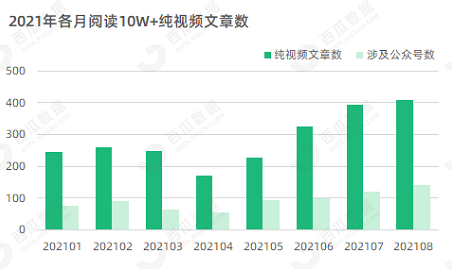 今年以来,在10W+文章中,纯视频文章的数量也在逐步增长。
